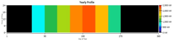 In these models, three different loads were used to simulate the energy required for allocating 1000, 3000 (reference system), and 6000 m3/ha of water annually for an irrigation field of 6000 ha. The studied values were obtained based on hourly energy consumption data. These values are distributed throughout the analyzed average year as presented in Table 1.
