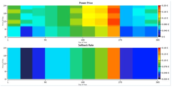 The hourly values of energy price and the sellback rate of the grid in an average year were defined using real price data from the system location. These values were imported into the HY4RES and HOMER models, resulting in Figure 7.