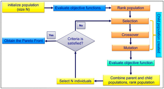 In the end, a group of Pareto-optimal, non-dominated solutions is found. For MOO, any solution is optimal. Figure 1 outlines the NSGA II procedure. For a more detailed explanation of the use of NSGA-II, see Deb et al. [76].