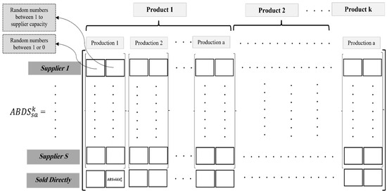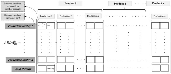 This section highlights the use of operators in metaheuristic methods. Figure 3, Figure 4 and Figure 5 display the graphical representation of the chromosome. There are four types of chromosomes in the developed model.