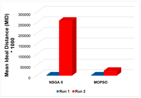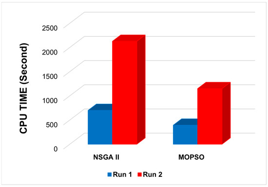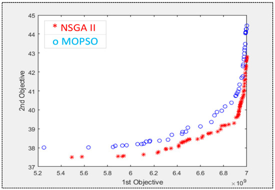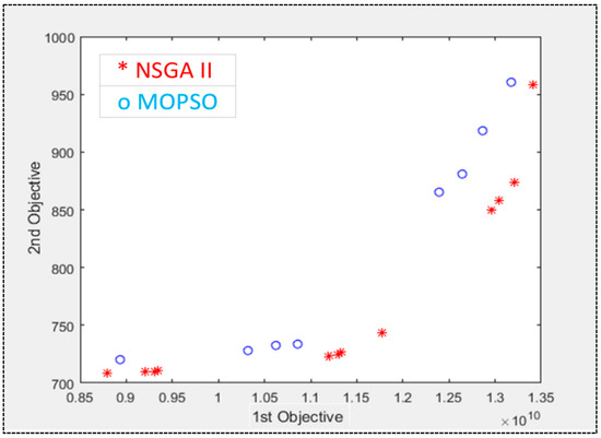 Deb et al. [76] introduced the NSGA-II as a powerful engine that can be used to explore decision spaces based on GAs to address MOO challenges. Since its release in 2000, NSGA-II has been used by numerous researchers to address various search and optimization issues. NSGA-II is one of the most popular techniques for creating Pareto borders [77]. The first random population of non-deterministic polynomial time (NP) chromosomes (solutions) size is generated to initiate NSGA II. The population’s objective values are then assessed over several generations using an assessment function. In the following step, The population is sorted using a non-domination sorting form to arrange several Pareto fronts of non-dominated solutions. The population being assessed is divided into groups according to the non-dominant nature of each member. The highest level is indicated by rank 1 in this ranking system, and the second-best level is indicated by rank 2, and so on. Moreover, the individuals with the lowest ranking show the first front, followed by individuals with the second lowest ranking, who show the second front, and so on.