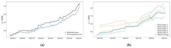 The mechanisms used by retailers to acquire energy and transfer these costs to regulated users are recognized in the  component of the CU. Those of importance for the purpose of this study are illustrated in Equation (2a–d) [], in which the subscripts that are not required in the context of this article are omitted (see Appendix A for detailed descriptions of the ).