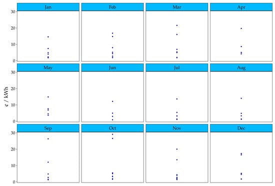Figure 7 shows the prices from Figure 6, separated by each month in which they materialized. For example, the top left box of Figure 7 corresponds to all January prices from Figure 6, the box to its right to February prices, and so on. This separation is performed for sampling purposes.