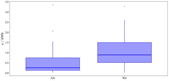 In electricity markets, the effect of the market makers has been addressed by [], in which the authors show that market makers enabled balancing buying and selling volumes. In [], it is shown that an increase in the number of market makers decreases the liquidity premium of energy futures. Finally, ref. [] proposes a decentralized market model through an autonomous market maker for prosumers in isolated geographical areas, guaranteeing the liquidity and formation of a fair price, which demonstrates the innovative and transformative potential of market makers in the electricity sector. While market makers aim to improve the efficiency of the markets, from liquidity to transparency, the effectiveness and the impact of these agents can vary due to a number of factors, including a flawed market design, the regulatory environment, the institutional framework, and the very implementation of the market maker itself [].