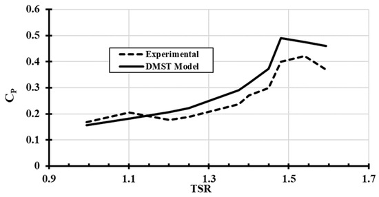 Validation of DMST model (TSR−CP) curve at pitch angle (β = 0°).