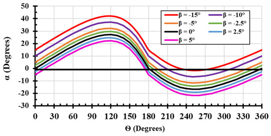 Variation of (Ѳ−AOA) at different pitch angles (β).