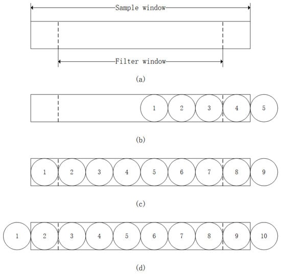 Schematic diagram of sliding window filter process. (a) Sampling window. (b) Initial stage of sampling. (c) During Sampling. (d) Cyclic Sampling.