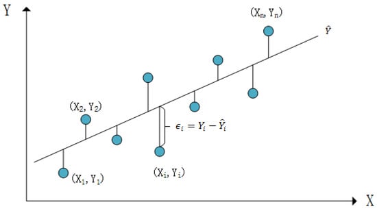 Linear regression is a statistical analysis method used to model the relationship between two or more variables. It assumes a linear relationship between the independent variables and the dependent variable, meaning the dependent variable can be approximated by a linear combination of the independent variables. This relationship is illustrated in Figure 6 and calculated as shown in Equation (8). Here, is the intercept, representing the expected value of when all independent variables are zero. , ,…, are the regression coefficients, indicating the influence of each independent variable on the dependent variable. epsilonϵ is the error term, representing the difference between the actual and predicted values in the linear regression model. Linear algorithms are straightforward to implement and interpret, making them simple and efficient for large datasets. However, they have limited flexibility as they assume a linear relationship between features and the target variable, which may not hold for complex real-world data. They are also sensitive to outliers, which can significantly affect their performance.
