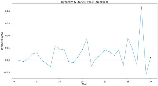 Based on the method described in the previous section, we conducted experiments using real data that were cleaned using a sliding window filter. The cleaned data were split into a 7:3 ratio, with 70% used to train a full-feature random forest model and the remaining 30% as the test set, divided into 30 parts. During this period, two minor adjustments, involving changes in the types of fabrics processed, were made in the workshop. The static method used the initial model to predict each test set, while the dynamic method retrained the model after each prediction by adding the current test set to the training data. Table 3 presents the R2 values for each test set using both static and dynamic methods, along with their differences (dynamic minus static). To visualize the changes, an R2 difference line chart is shown in Figure 11. Observing the line chart, the dynamic model performs similarly to the static model when workshop data fluctuations are relatively small. However, when significant changes occur, such as multiple machines undergoing adjustments, the dynamic model significantly outperforms the static model, demonstrating the reliability of the incremental learning approach in adapting to dataset variations.