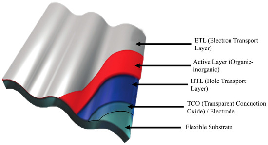Research into flexible hybrid organic–inorganic photovoltaic (PV) [1,2,3] devices have attracted attention due to their ease of manufacture at room temperatures with readily available materials [4] that are inexpensive but of impressive optoelectronic properties in charge carrier mobility [5], dielectric constant, absorption coefficient, and carrier diffusion length [6,7]. A low-energy-loss charge generation and collection are achieved due to the generation of charges freely in the bulk material after light harvesting. Their tunable band gap and capability to form thin films with admirable charge-carrier transport characteristics [8,9,10,11,12] make hybrid organic–inorganic photovoltaic devices commercially promising [13,14,15,16].