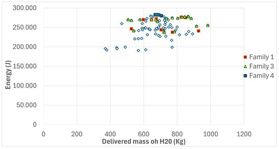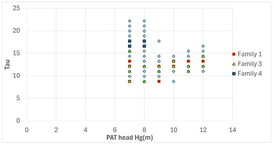 An individual analysis of each PAT system was conducted to determine the design variable values that correspond to the non-dominated solutions on the Pareto front (Equations (4)–(6)). This approach enabled the identification of the best approximating Pareto front among the analysed PATs. This was accomplished employing a BOTTOM-UP approach, from a singular study of each PAT to a global analysis among all PAT families. Below, for brevity, only the results pertaining to the overall dominance study across the four PAT families are presented.