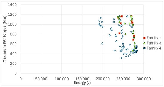 Third PAT family non-dominated solutions (wind-extracted energy vs. PAT torque domain).