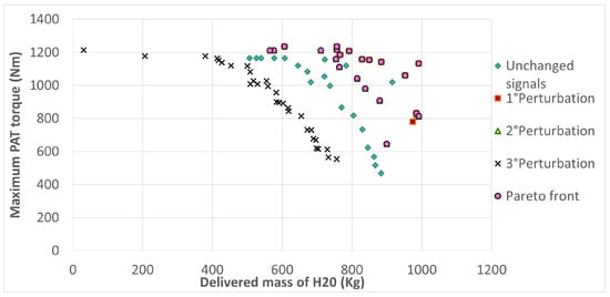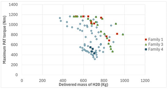 Third PAT family non-dominated solutions (delivered mass of H2O vs. PAT torque domain).