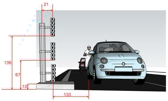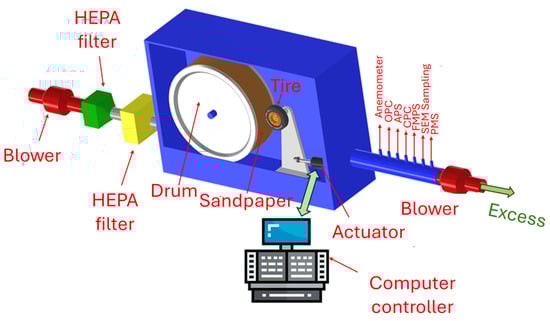 A correct design of the tire particulate sampling system is crucial to reduce uncertainties in the results and maximize the results’ repeatability. That is, the position of the sampling system strongly affects the results. The sampling system inlet must be placed as close as possible to the point of contact between the tire and the road surface to minimize the influence of the external environment (air speed) [].