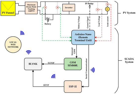 - Aghenta, L.O.; Iqbal, M.T. Development of an IoT-Based Open-Source SCADA System for PV System Monitoring. In Proceedings of the 2019 IEEE Canadian Conference of Electrical and Computer Engineering (CCECE), Edmonton, AB, Canada, 5–8 May 2019; pp. 1–4. [Google Scholar] [CrossRef]