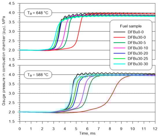 - Kuszewski, H. Experimental study of the autoignition properties of n-butanol–diesel fuel blends at various ambient gas temperatures. Fuel 2019, 235, 1316–1326. [Google Scholar] [CrossRef]