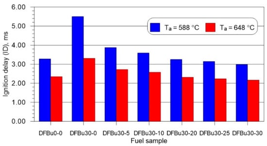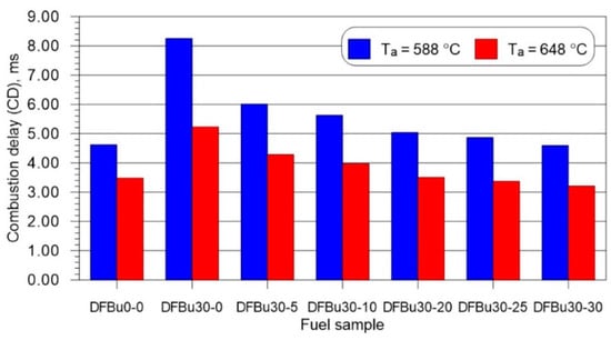 - As the mass fraction of 2-EHN in a 1-butanol–diesel blend at 30% (v/v) of 1-butanol increased, the ignition delay and combustion delay shortened, with noticeably lower values of these parameters recorded for the higher initial temperature in the combustion chamber.