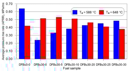 - As the mass fraction of 2-EHN in a 1-butanol–diesel blend at 30% (v/v) of 1-butanol increased, for a lower initial temperature in the combustion chamber, the average pressure rise rate increased, and for the higher of these temperatures, the value of this parameter decreased.