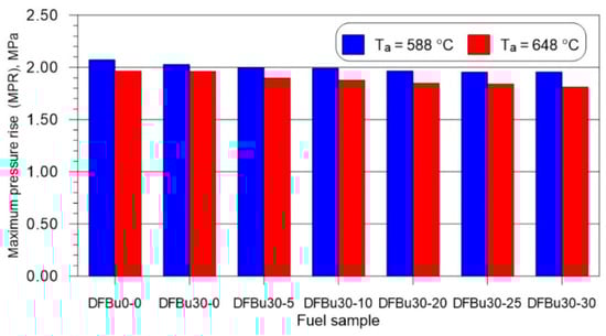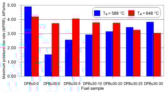 - As the mass fraction of 2-EHN in a 1-butanol–diesel blend at 30% (v/v) of 1-butanol increased, for both analyzed initial temperatures in the combustion chamber, the value of maximum pressure rise decreased marginally.