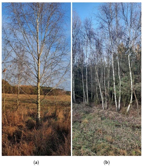 - Jonczak, J.; Oktaba, L.; Pawłowicz, E.; Chojnacka, A.; Regulska, E.; Słowińska, S.; Olejniczak, I.; Oktaba, J.; Kruczkowska, B.; Kondras, M.; et al. Soil organic matter transformation influenced by silver birch (Betula pendula Roth) succession on abandoned from agricultural production sandy soil. Eur. J. For. Res. 2023, 142, 367–379. [Google Scholar] [CrossRef]