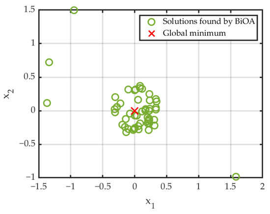 - Tests based on the benchmark functions prepared for the analyzed BiOA and other well-known algorithms—a comparison.