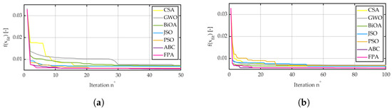 - The performance of any algorithm should be paired with a satisfactory optimization time. The development of NIOAs (based on the chosen representatives) has significantly decreased the optimization time of benchmark functions. In this field, the JSO performed best; however, the number of adjustable parameters is rather high. This may lead to substantially longer and more difficult implementation. In the case of engineering applications, the optimization time is negligible with respect to the simulation time.