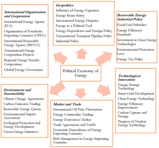Technological innovation stands as a fundamental catalyst for the political and economic metamorphosis of energy. Progress in energy storage solutions, smart grid technologies, clean energy innovations, and carbon capture and storage not only bolstered energy efficiency, but also unveiled new avenues for market expansion [17]. The swift evolution of electric vehicles, for example, is reshaping global petroleum demand and intensifying the contest for critical mineral resources, such as rare earth elements. Market and trade dynamics exert a profound and immediate influence on energy pricing and security of supply. Volatility in international oil prices, the trading of energy commodities, and the energy derivatives market are central to the functioning of the global energy economy. Shifts in trade agreements and tariff policies, exemplified by the trade tensions between the United States and China, also had indirect yet significant repercussions on the energy sector.