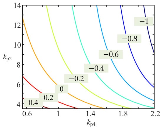 From the analysis results in Section 3, it is clear that there is oscillation risk in the PV grid-connected system with controllable nonlinear in the range of 80–150 Hz, and kp4 and kp2 are the key parameters that affect system stability. By selecting appropriate values of kp4 and kp2, the impedance of the parallel subsystem can be reshaped, thereby improving system stability. However, according to [24,25], there is a certain interaction among control parameters or control loops, which may narrow the selectable ranges of control parameters.