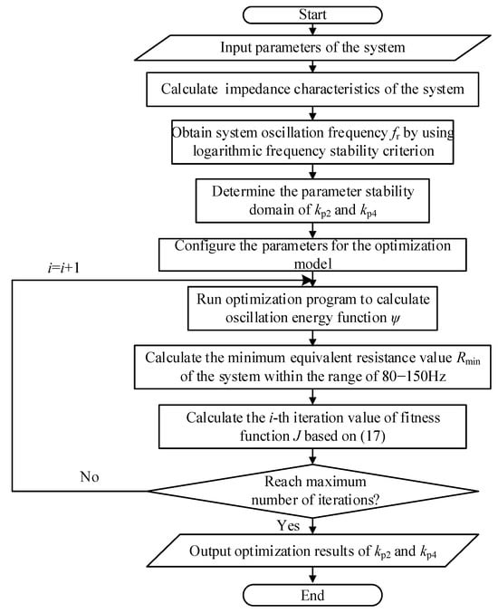 By optimizing kp4 and kp2, the impedance of the system in the easily oscillating frequency band can be reshaped, thereby improving the stability of the system. Consequently, based on the stability domain analysis of the key parameters in Section 4.1, this subsection proposes a parameter optimization method that balances system stability and response performance.