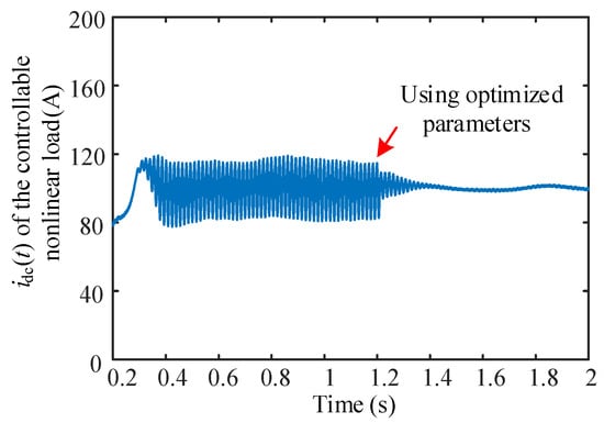 The DC side current idc(t) of the controllable nonlinear load before and after parameter optimization.