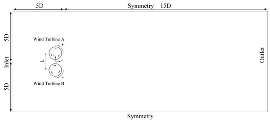 Schematic diagram of the calculation area of the dual VAWTs numerical model.