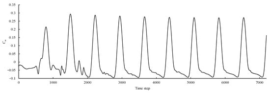 The simulation was set to calculate the tenth cycle. Figure 3 shows the relationship between the instantaneous moment coefficient of a single blade and the number of steps when the wind turbine rotates 10 times when the tip speed ratio is 2. It can be seen that the last two revolutions converged stably.