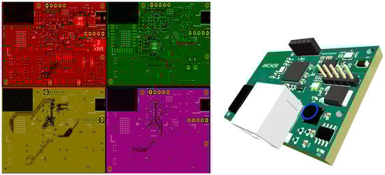 For the system, two fundamental devices were designed from the ground up and realized, between which there is a kind of synergy. Unlike transmission methods, they cannot be considered simplistically as transmitter and receiver, as both devices actively use two-way communication. The tag and the anchor have been made with a particular focus on energy efficiency and miniaturization to maximize their range of applications in different market sectors [27]. The UWB anchor seen in Figure 3 will be presented first.