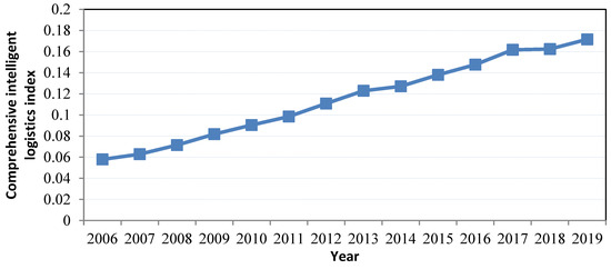 Average comprehensive intelligent logistics index in China (2006–2019).