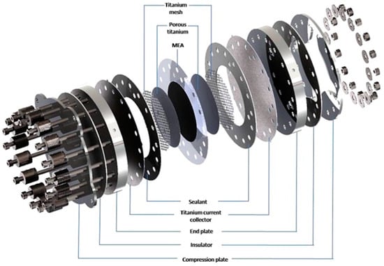 Hydrogen energy offers interesting prospects as it is perceived as potential energy carrier for applications in heavy transportation and for industries and processes that are hard to electrify [,]. From a sustainability and environmental perspective, polymer exchange membrane (PEM) water electrolysis has been regarded as one of the most promising methods for highly efficient hydrogen production from renewable energy sources. It generates only oxygen as a by-product and does not emit any carbon emissions [].