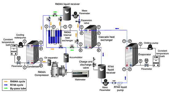 Schematic of the test apparatus: the R404A IRS using R744 as the secondary fluid [25].