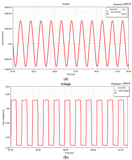 Medium-frequency transformers’ operating conditions. (a) Operating current. (b) Operating voltage.