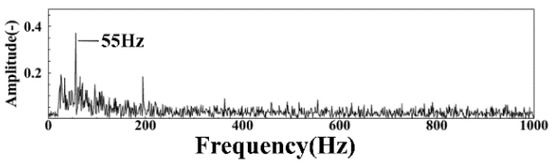 In the combustion flow field, the second largest influencing factor of pressure fluctuation is the macroscopic fluctuation caused by the flow field structure. After the inlet air enters the combustion chamber through a multi-stage swirler and undergoes swirl action, the resulting flow field exhibits non-uniform distribution, generating fluctuations. To analyze the influence of the internal flow field structure on DP, the DP signal in the cold state combustion chamber without ignition is analyzed. Taking Group A as an example, after filtering the original signal and then performing FFT calculations, its dimensionless spectrum is shown in Figure 11 below. It can be seen from the figure that there exists a dominant fluctuation frequency near 50 Hz in the low-frequency part, which may be related to the inherent characteristics of the combustion chamber.