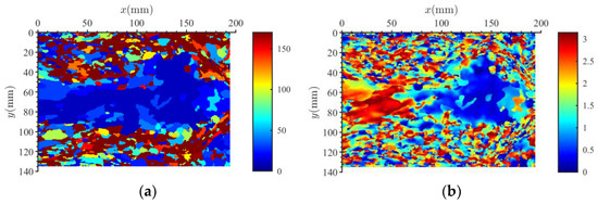 To further analyze the related characteristics of these two fluctuation signals’ information, image FFT processing was applied to this heat release field. Figure 14 shows the frequency and phase diagrams of the FFT. Near the flame shear layer, where chemical reactions are most intense, there exist strong fluctuations in the heat release rate. It can be seen from the frequency diagram that the fluctuation frequency at the position of the flame shear layer is mainly around 150 Hz, which is consistent with the dominant fluctuation frequency of the heat release rate analyzed in Section 5.1.1 of the experimental results. Similarly, the phase diagram at this shear layer position also exhibits small-scale fluctuation characteristics of the flame. Near the central position along the axis of the combustion chamber, the frequency distribution is primarily dominated by low frequencies of 33 Hz. From the phase diagram, it can be observed that near the central axis, there is an influence of large-scale structures in space, causing disturbances to be in phase over a wide area.