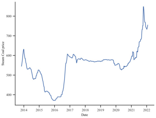 Concerning coal prices, we use the composite average price index of Bohai Rim Steam Coal (Q5500k). The Bohai Rim ports are the main force of coal transportation in China, and their coal prices can effectively reflect China’s coal price situation [42].
