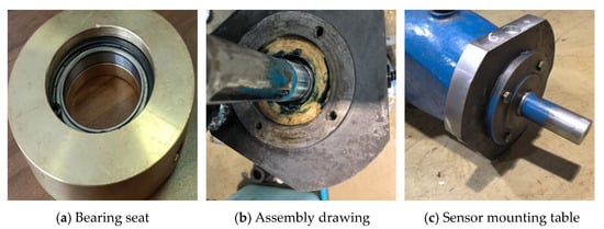 The centrifugal pump used in this experiment is the IS 100-80-160, which features a mature hydraulic design and is widely used in various applications. Being a medium-to-low specific speed centrifugal pump, it was chosen as the focus of this study due to its versatility. Figure 2 and Figure 3 depict the structural diagrams of the bearing experiment bench and sensor installation bench of the centrifugal pump.