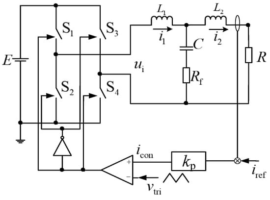 With the development of photovoltaic (PV) power generation technology, the high-power photovoltaic power system in which a lower switching frequency is employed by the inverter to reduce the switching loss and electromagnetic interference is becoming increasingly prevalent [,]. In order to meet the harmonics requirements, a high output inductance should be used, which will not only increase the filter volume but also weaken the system’s dynamic response. An attractive solution for this problem is to use an LCL filter [,,].