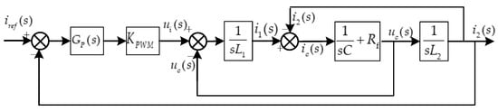 According to the schematic diagram of the system shown in Figure 1, the linearized switching model of a single-phase voltage source full-bridge inverter with an LCL filter is as shown in Figure 2.