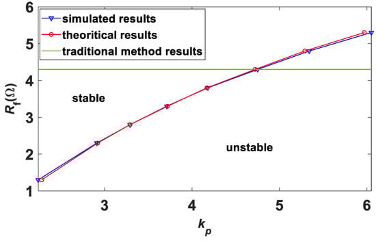 By comparison, it can be found that the system can still operate stably when the damping resistance is less than the traditional design standard. It is clear that the derived analytical expression of the stability boundary extends the selection range of damping resistance Rf in engineering design.
