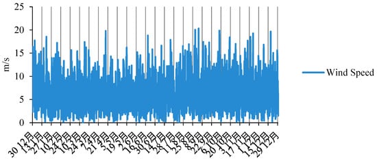 Wind energy has grown significantly over the last decade, and it is now the world’s second largest renewable source of electricity generation. Wind turbines (WTs) are commonly used to generate electrical power from wind energy via an appropriate wind energy conversion system. Turbines convert wind energy into electrical energy. The selection of wind turbines is influenced by various factors such as hub height, component cost, service time, and cut-in wind speed. Because of this, the power output that can be obtained from various wind generators differs significantly and depends on the wind speed at hub height. HOMER Pro determines the wind speed at the wind turbine’s hub height at each time step. The equation shown in 4 is used by HOMER to determine the hub height wind speed with the logarithmic law. The power generated by WT is primarily determined by wind speed characteristics at the location of installation and WT specifications, as shown in Equation (5) [42].