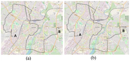 Diagram of the route no. 13: (a) direction A to B; (b) direction B to A.
