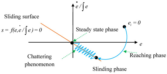 - Replacing discontinuous control functions with “saturation” or “sigmoid” functions is a common approach used in SMC to achieve continuous control and reduce vibrations. However, one of the main drawbacks of this approach is that the system state trajectory does not converge exactly towards the sliding surface but wraps around it, which can reduce the system’s accuracy and robustness to disturbances [34,35,36].
