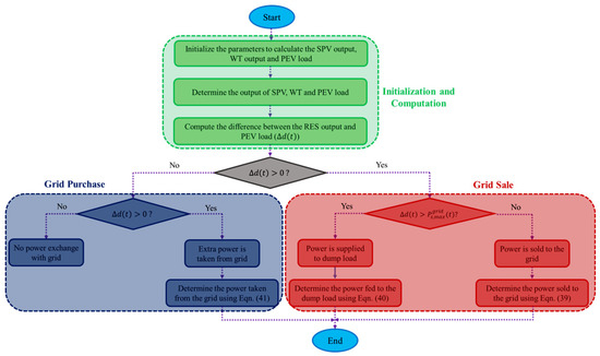 In the second mode of operation, when PEV demand for electricity is less than RES power generation, the extra electricity is sold to the grid operator. This can be mathematically depicted using Equation (13).