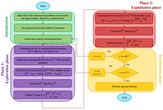 Further, the Pufferfish Optimization Algorithm (POA) was employed in this research as an optimization tool due to its numerous benefits. It excels in global optimization, effectively exploring the search space to identify global optima rather than getting trapped in local optima. POA strikes a critical balance between exploration and exploitation, enhancing its performance in finding high-quality solutions. Its robustness and flexibility allow it to be applied to a diverse range of optimization problems across various domains. Additionally, POA’s adaptability to problem-specific constraints and requirements makes it versatile for complex scenarios. The algorithm’s capacity for parallelism enables faster convergence and efficient handling of large-scale problems. Moreover, POA features fewer parameters to tune compared to some other optimization algorithms, simplifying its implementation and use. However, POA also has limitations. Like many metaheuristic algorithms, it may require careful tuning to achieve optimal performance for specific problems. Its performance can be sensitive to the initial population and parameter settings, which might necessitate additional computational effort. Furthermore, while POA is generally robust, it may not always outperform specialized algorithms tailored for particular problem types. Despite these limitations, POA’s strengths in global optimization, adaptability, and ease of use make it a valuable algorithm for various optimization challenges.