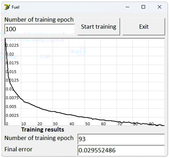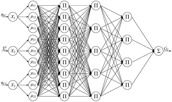 AFNN, based on the Sugeno model, is more appropriate for the neuro-fuzzy HTE ACS constructing task than ANFIS [] or TSK models [], due to its ability to handle uncertainty and nonlinearity in the system using a combination of FL and NNs. The Sugeno model provides a more flexible mechanism for describing fuzzy rules, which allows the system to better adapt to different HTE operating conditions. In addition, an AFNN using the Sugeno model can better adapt to changing conditions and requirements, thanks to a more complex network structure and the ability to train not only membership function parameters, but also neuron weights, which reduces the need to manually tune the system for each specific situation.